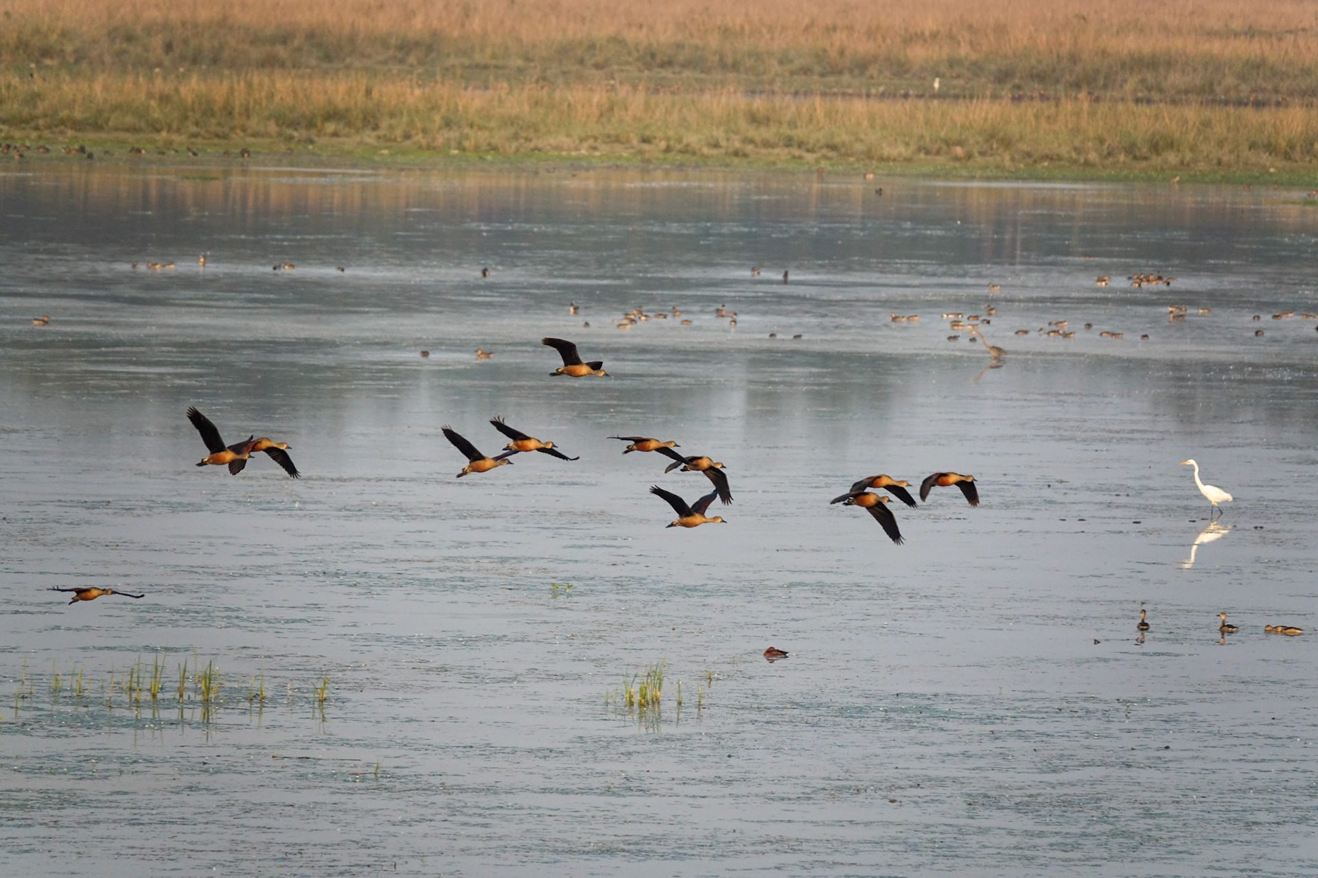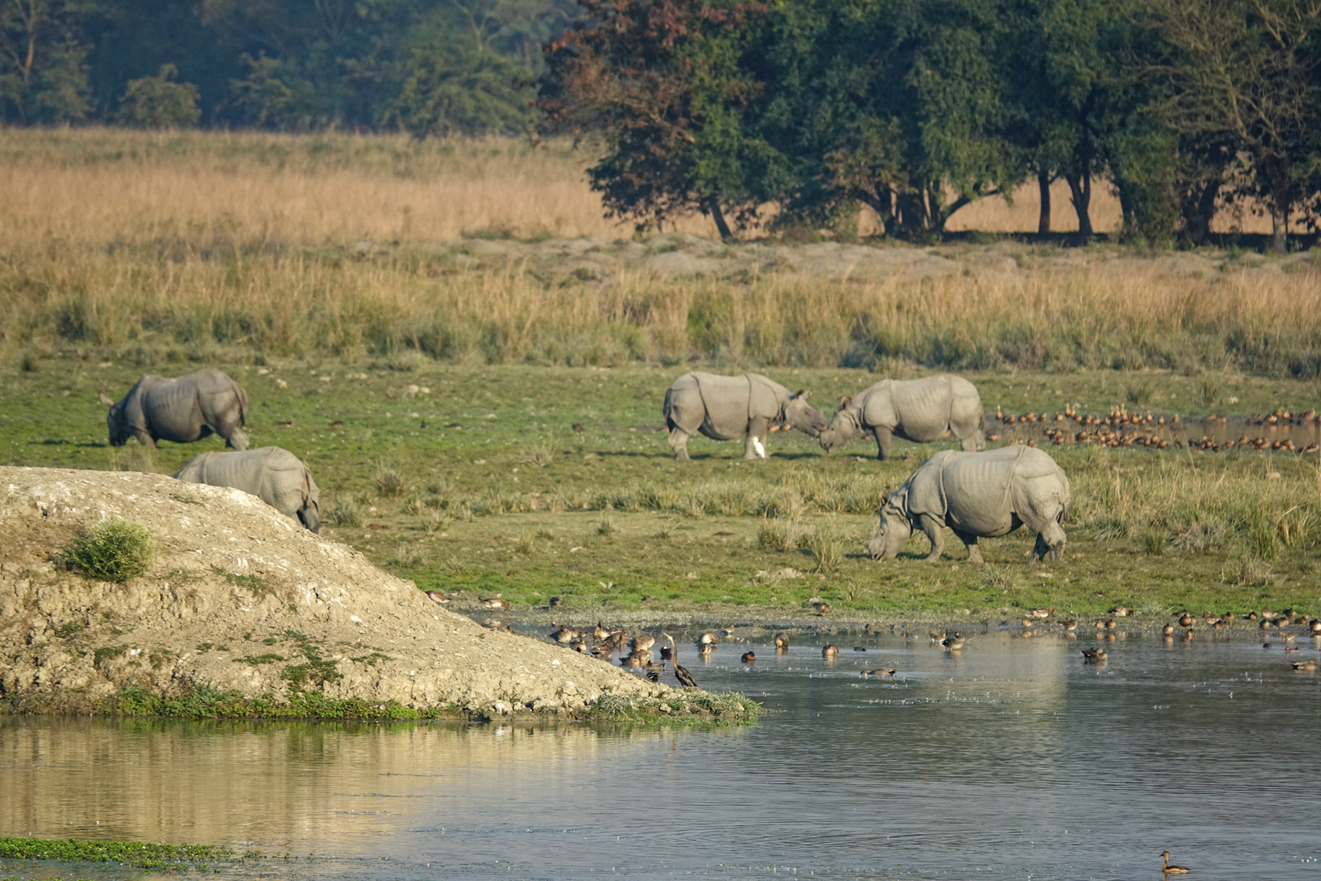 Pobitora is best known for its dense population of one-horned rhinoceros, often seen grazing during early safaris or even from the highway that skirts the sanctuary. But in winter, the beels and marshes draw large numbers of migratory waterfowl alongside resident storks, raptors, kingfishers, and grassland birds, creating long, unhurried hours of watching and listening. Small enough to explore without rush, Pobitora is the kind of place where a single day can offer close encounters, good light, and the quiet satisfaction of paying attention.